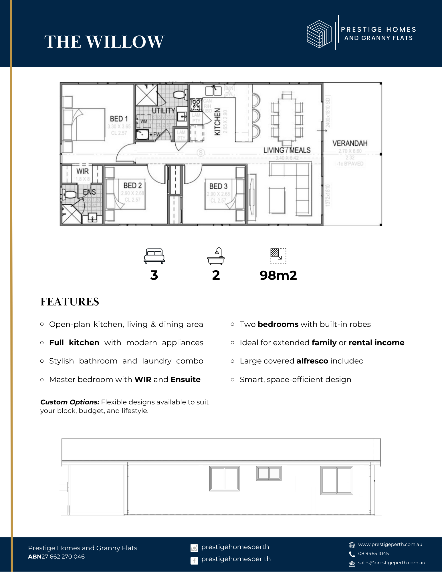 The Willow delivers a perfect balance of space and sophistication in a 98m² layout designed for contemporary living. With three bedrooms and two bathrooms, this design is ideal for families, investors, or homeowners wanting extra space without compromising style.